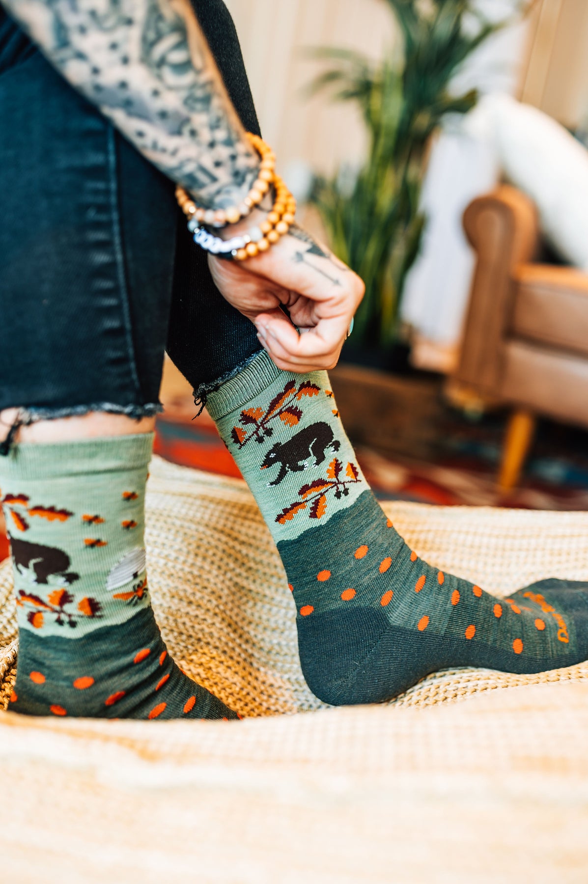 Knit in honor of the Clean Water Act’s 50th anniversary and organizations like the Water Keepers Alliance that protect water globally. Don’t get us wrong, these socks will keep you dry and comfortable throughout the day—but the design is an homage to frogs, swans, and all the other water-loving species (including us humans). We may be tough, but water is life.