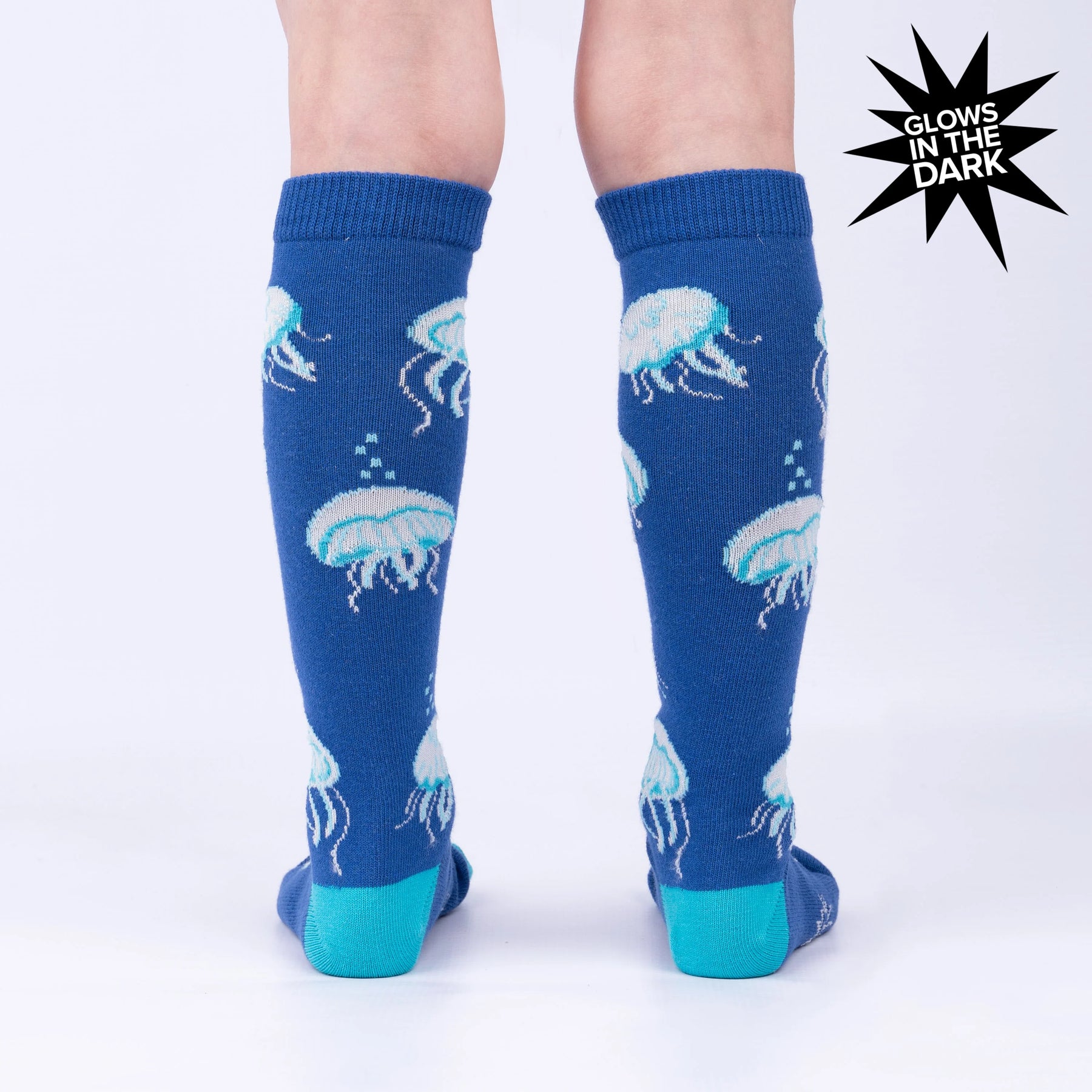 You can look, but you shouldn't touch these little creatures! These glow in the dark jellyfish socks are a perfect addition to your kiddos’ outfit for their first, second, or 17th trip to the aquarium. When they dim the lights for everyone to see the beautiful glow of the sea jellies, their eyes are also going to light up at the sight of these “sock jellies”!