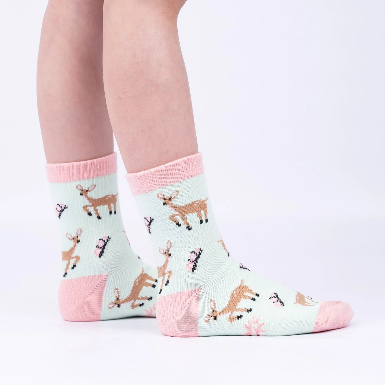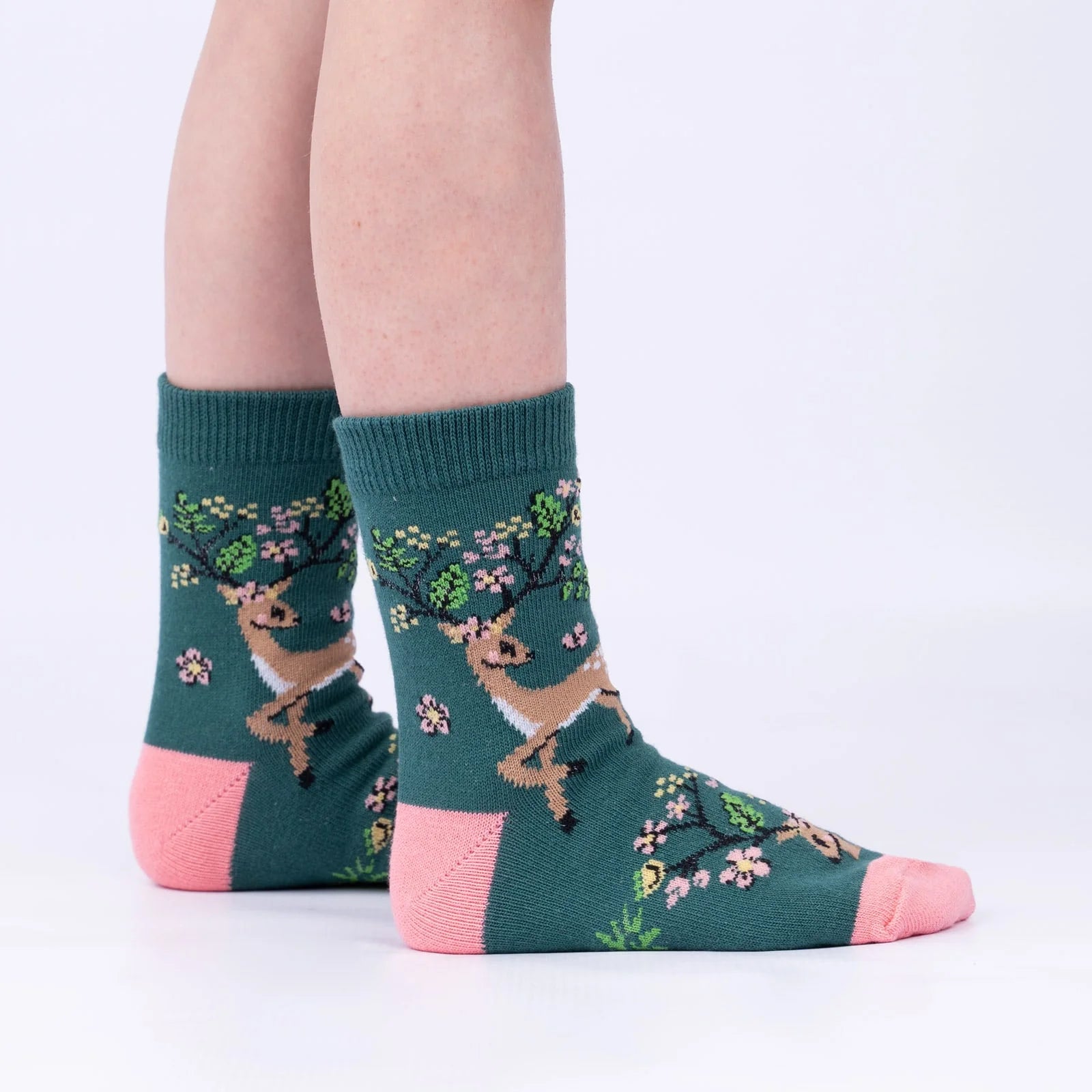 Every Spring begins with new growth, and somewhere in the forest on a misty Spring morning a wobbly-kneed little fawn is taking their first steps out of the trees into a bright flower-blanketed meadow. Now your little fawn can bound along with them and mix and match between 3 awesome pairs all themed on our Spring Awakening socks! Not only is this a fun way for your child to express themselves and get creative, but as a 3 pack they come at a great value!