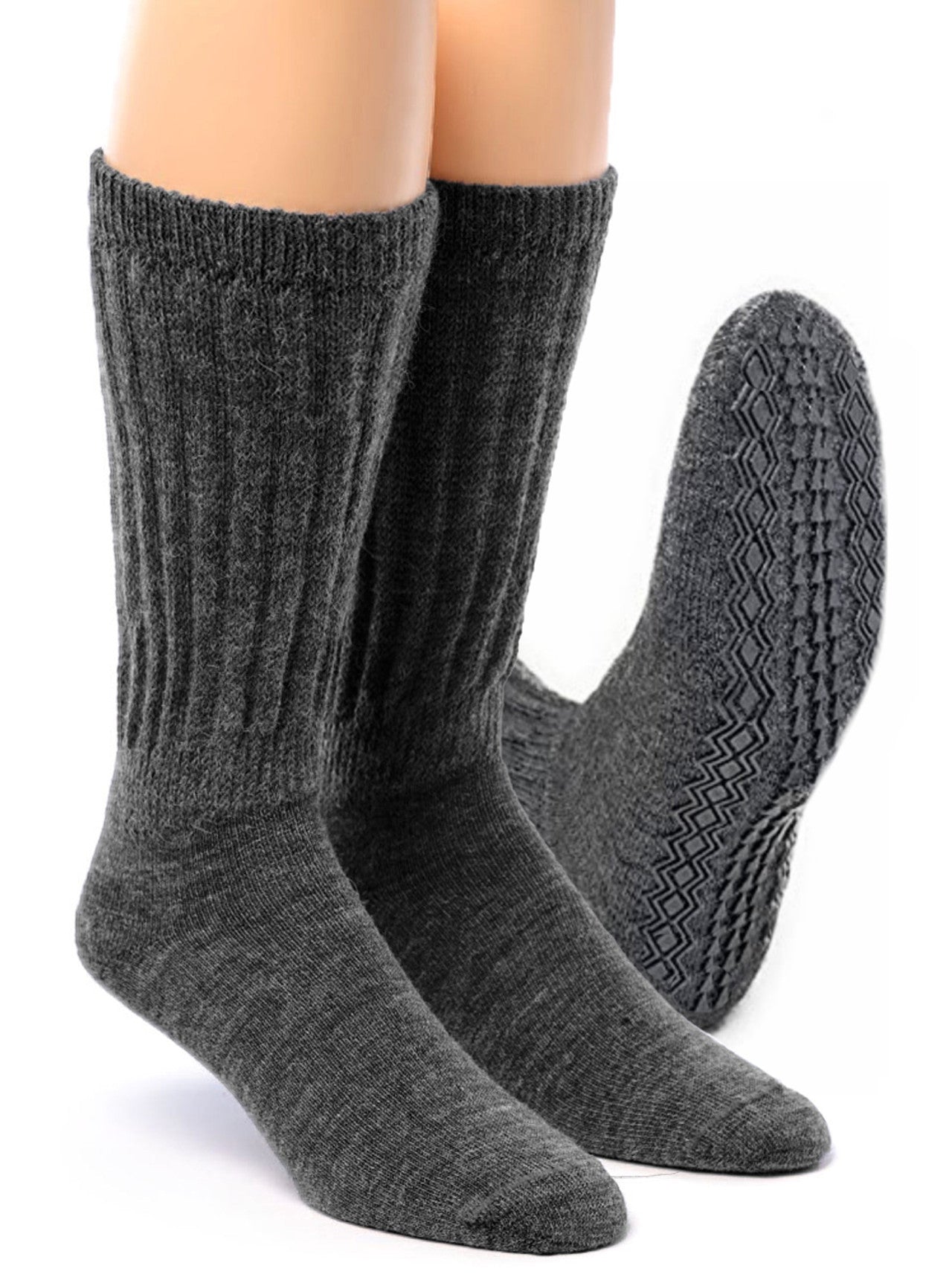 Created specifically for sensitive feet and wider calves, our Diabetic Terry-Lined Non-Skid Wide-Calf Alpaca Socks combine security and comfort without restrictive pressure. A plush terry interior cushions every step, while a soft comfort band and extra-wide ribbing support healthy circulation and accommodate swelling. The breathable, rubberized tread enhances stability on slick floors, making these a smart choice for home, travel, and nighttime wear.