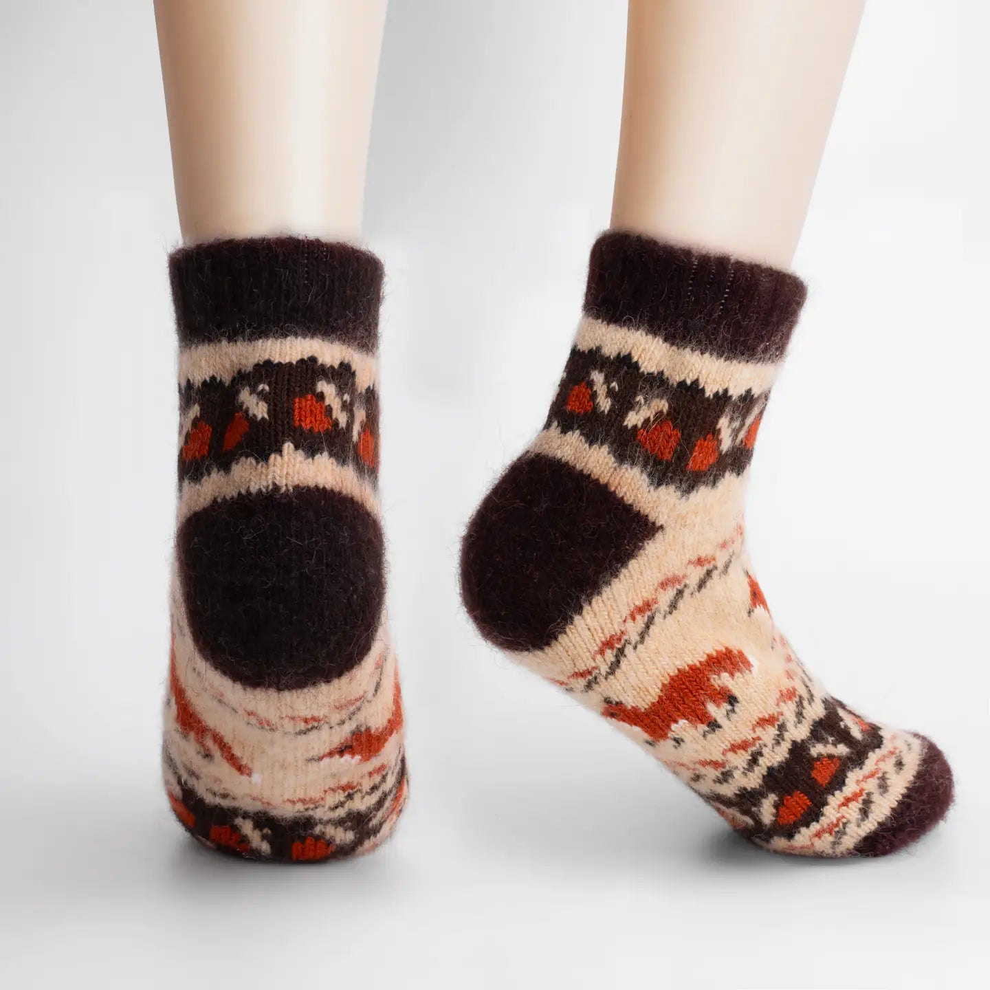 The socks are made of 80% natural soft goat wool, 20% acrylic fibers, and 1% elastane.
