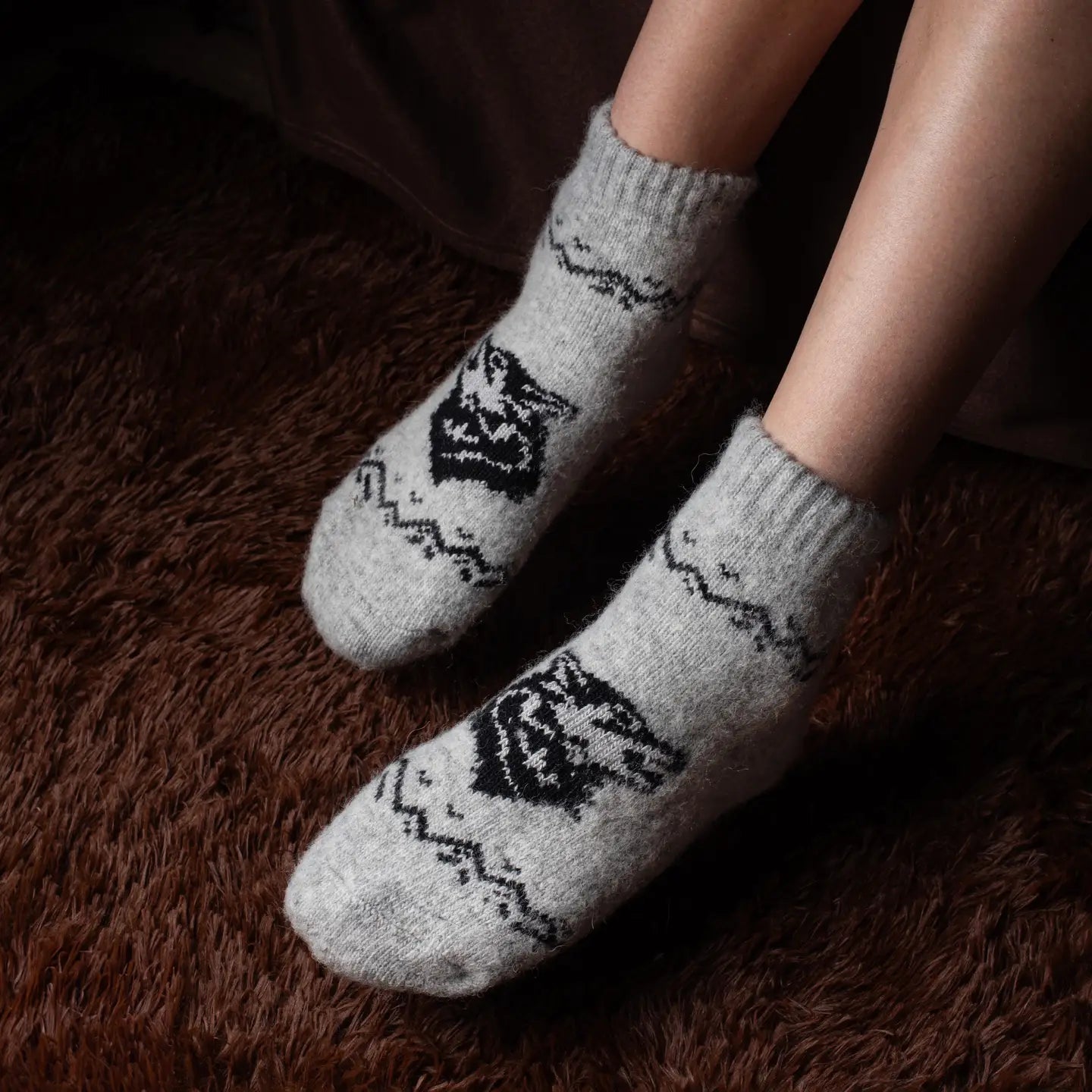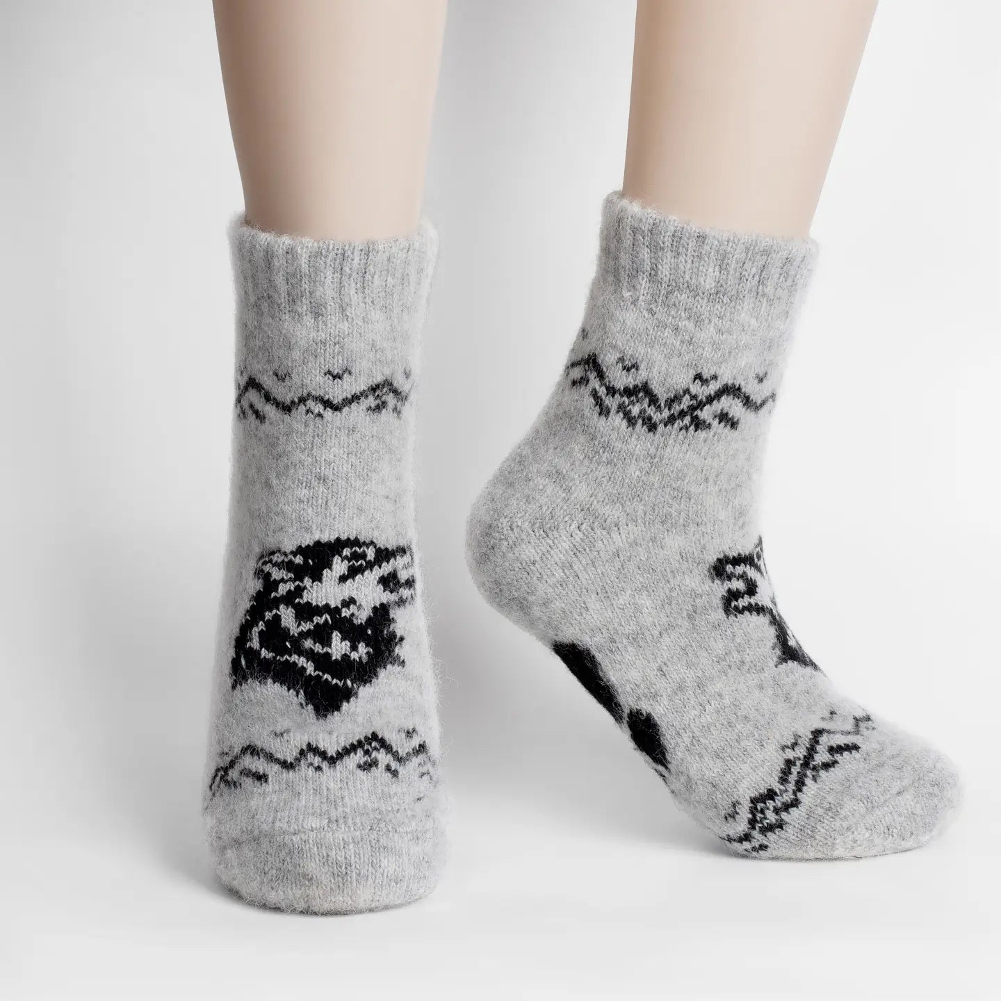 Artisanal-style Russian wool socks use traditional patterns for inspiration. They are loomed and finished by hand with a small team of women in the heart of Russia. Siberia Spirit socks are known for their ability to absorb moisture and wick it away from the body, thereby creating an environment that reduces bacteria growth and odor. Whether worn outside with boots or around the house in lieu of slippers, Siberia Spirit wool socks will provide your feet with cozy warmth all day.