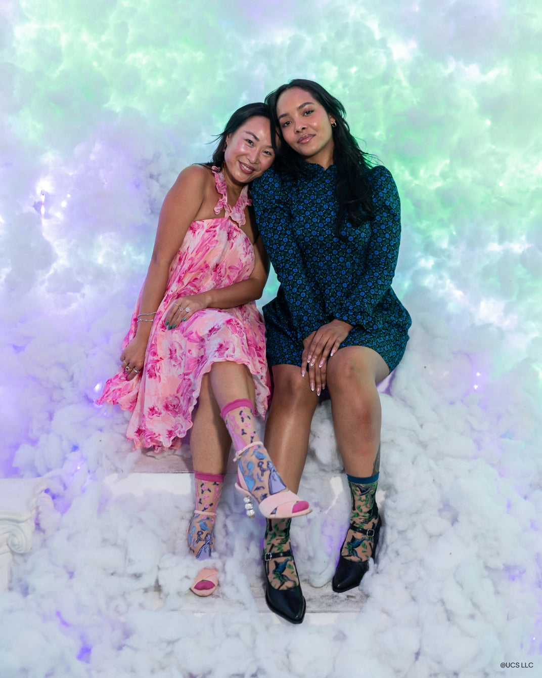Channel Glinda's perfectly pink glow in this Glinda Silhouette sheer sock, featuring Glinda silhouettes, bubbles, butterflies and florals. Designed in shades of pink and purple to symbolize her looks from the first movie (pink) and the second movie (purple). Finished with a playful ruffle cuff to bring a touch of theatrical charm to your everyday look.