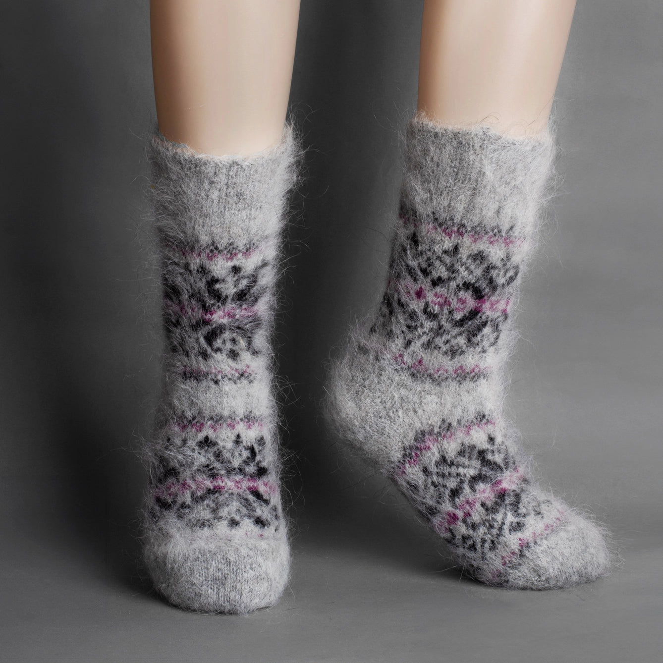 Artisanal-style Russian wool socks use traditional patterns for inspiration. They are loomed and finished by hand with a small team of women in the heart of Russia. Siberia Spirit socks are made of either 80% Russian goat wool or 80% New Zealand Merino sheep wool and are known for their ability to absorb moisture and wick it away from the body, thereby creating an environment that reduces bacteria growth and odor. Whether worn outside with boots or around the house in lieu of slippers, Siberia Spirit wool socks will provide your feet with cozy warmth all day.
