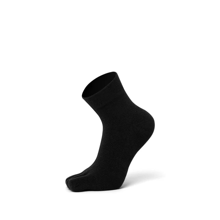 Your Sport Sock, Upgraded. Stay cool, dry, and supported through every workout. These mini crew socks feature a secure fit, arch compression, and a vector heel for comfort that won’t quit. The five-toe design prevents blisters and friction, while COOLMAX® EcoMade technology wicks away sweat—keeping your feet fresh and your footprint lighter.